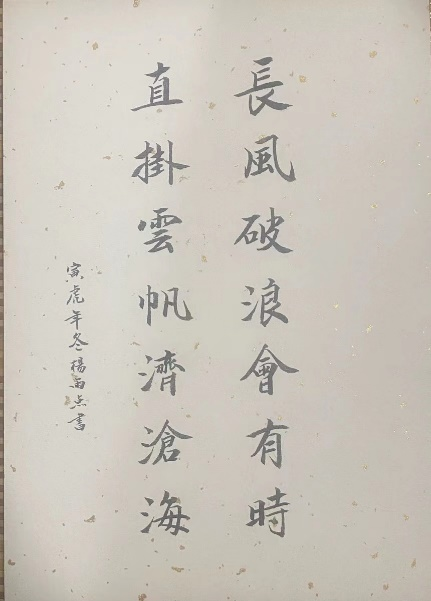 嘉禾公司杨雨点书写了李白《行路难》其中一句,寓意整个文投集团大家庭,在新的一年会越来越好、再创辉煌!